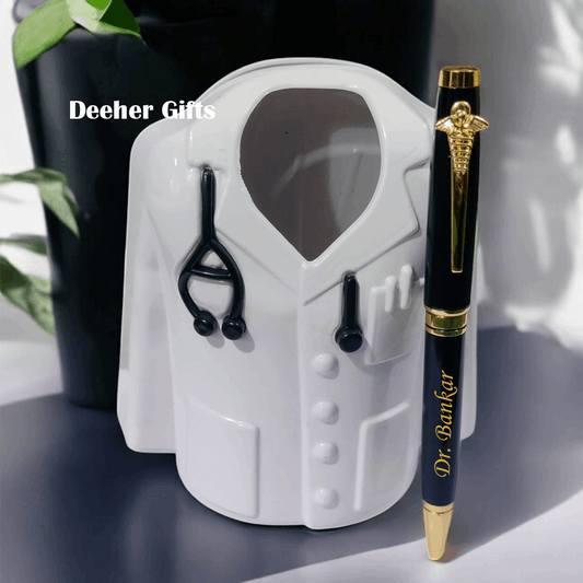 Personalized Doctor Coat Pen Stand And Pen Gift Set